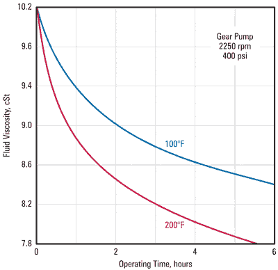 Fluid exposed to high temperature can experience permanent deterioration. For example, a substantial reduction in fluid viscosity normally accompanies asperity contacts (mechanical rubbing) and an increase in temperature. In addition, irreversible viscosity change can also occur when a fluid having poor shear stability encounters high temperature. Whether through rapid oil oxidation promoted by high temperature with its accompanying sludge formation production, or simply accelerated component wear, the influence of high temperature on oil properties is serious and generally deserves prompt consideration and attention.